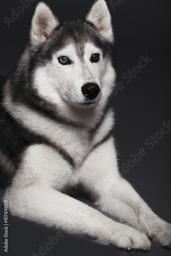 Beautiful Siberian Husky Dog With Blue And Brown Eyes Posing In Studio On Dark Background Buy This Stock Photo And Explore Similar Images At Adobe Stock Adobe Stock