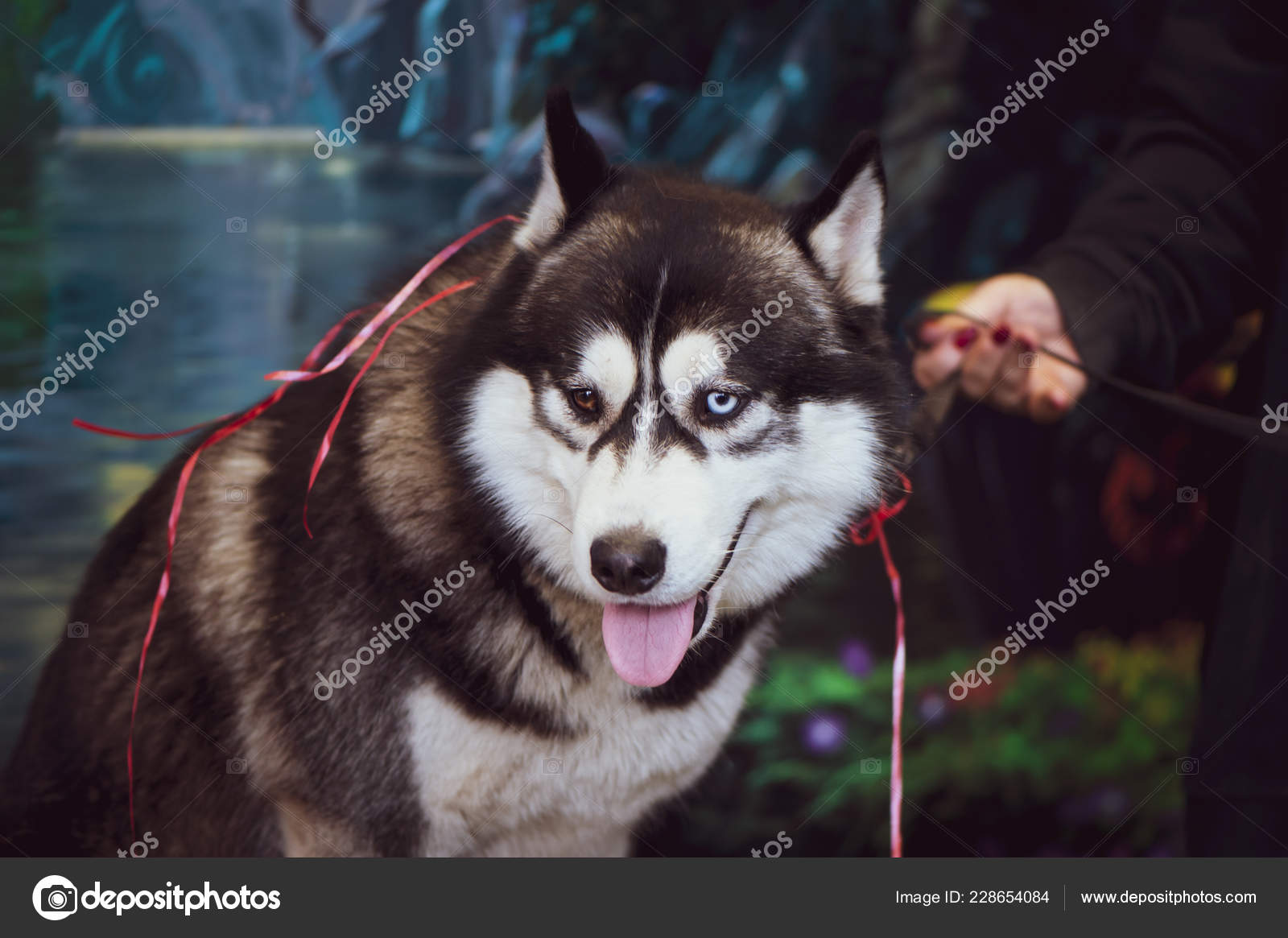 Exhibition Dogs Brown Siberian Husky Eyes Different Colors Stock Photo C Wildstrawberry 228654084