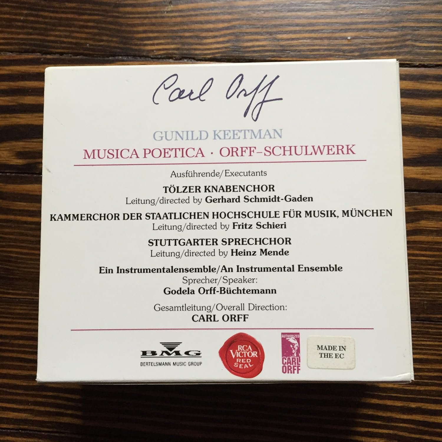 Carl Orff Carl Orff Gerhard Schmidt Gaden Heinz Mende Godela Orff Buchtemann Tolzer Knabenchor Staatlichen Hochschule Fur Musik Munich Stuttgart Sprechchor Ein Instrumentalensemble Carl Orff Musica Poetica Orff Schulwerk Gunild Keetman 6