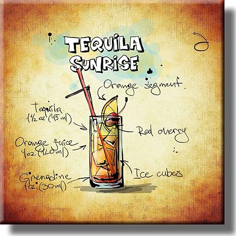 Artworks Decor Tequila Sunrise Cocktail Recipe Picture On Stretched Canvas Wall Art Decor Ready To Hang 12 X 12 Amazon Co Uk Kitchen Home