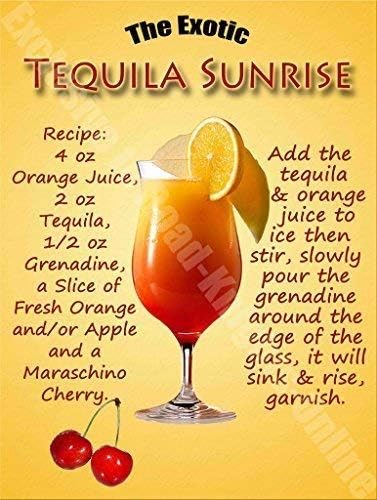Tequila Sunrise Cocktail Recipe Vintage Tin Sign Retro Nostalgic Wall Decoration Ellas Wohnwelt De