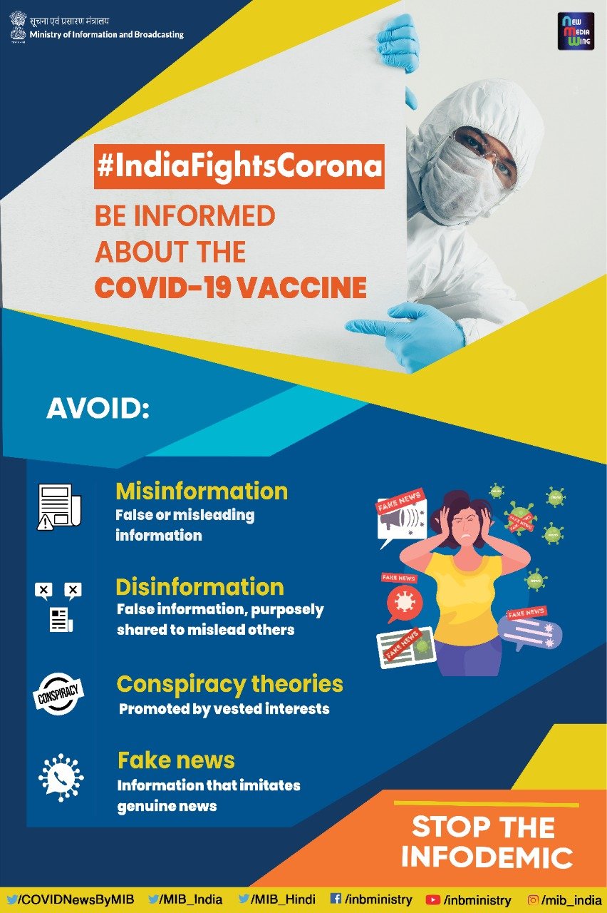 Indiafightscorona On Twitter Indiafightscorona Be Informed About The Covid19 Vaccine Avoid Misinformation Disinformation Conspiracy Theories Fake News Staysafe Unite2fightcorona Https T Co Qqk9by5ijl